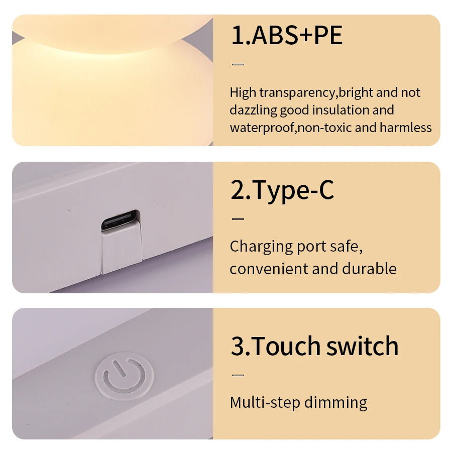 Das Led Stimmungslicht aus robustem ABS-Material bietet warmweißes Licht (2800-3200K) plus RGB-Farbwechsel. Mit Touch-Dimmer, 3W Leistung und integriertem Lithium-Akku schafft dieses LED Stimmungslicht mit Farbwechsel für Schlafzimmer vielseitige Atmosphäre. USB-aufladbar (5V/2A), Ra>80 für natürliche Farben, kompakte Bauweise. EU-zertifiziert (CE), perfekt für stimmungsvolle Abende.